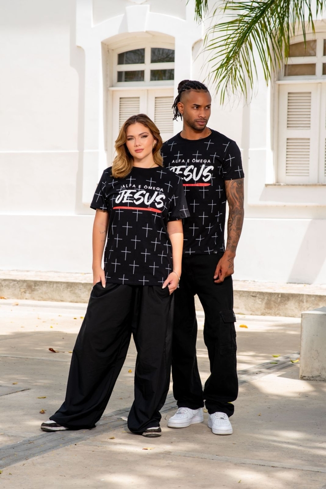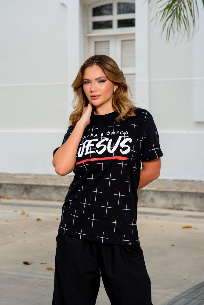 CAMISETA UNISSEX ALFA E ÔMEGA (COR PRETA)