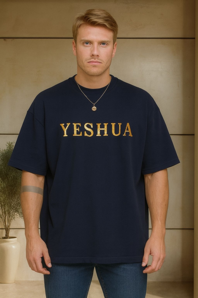 CAMISETA UNISSEX OVERSIZED YESHUA DOURADO (AZUL MARINHO)