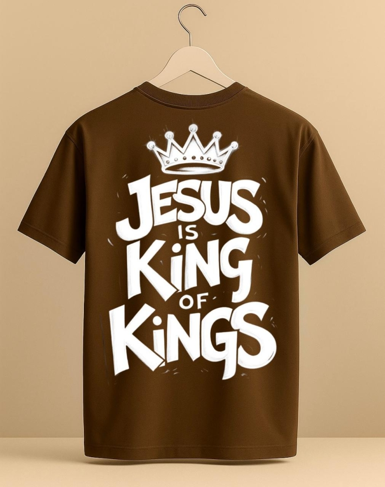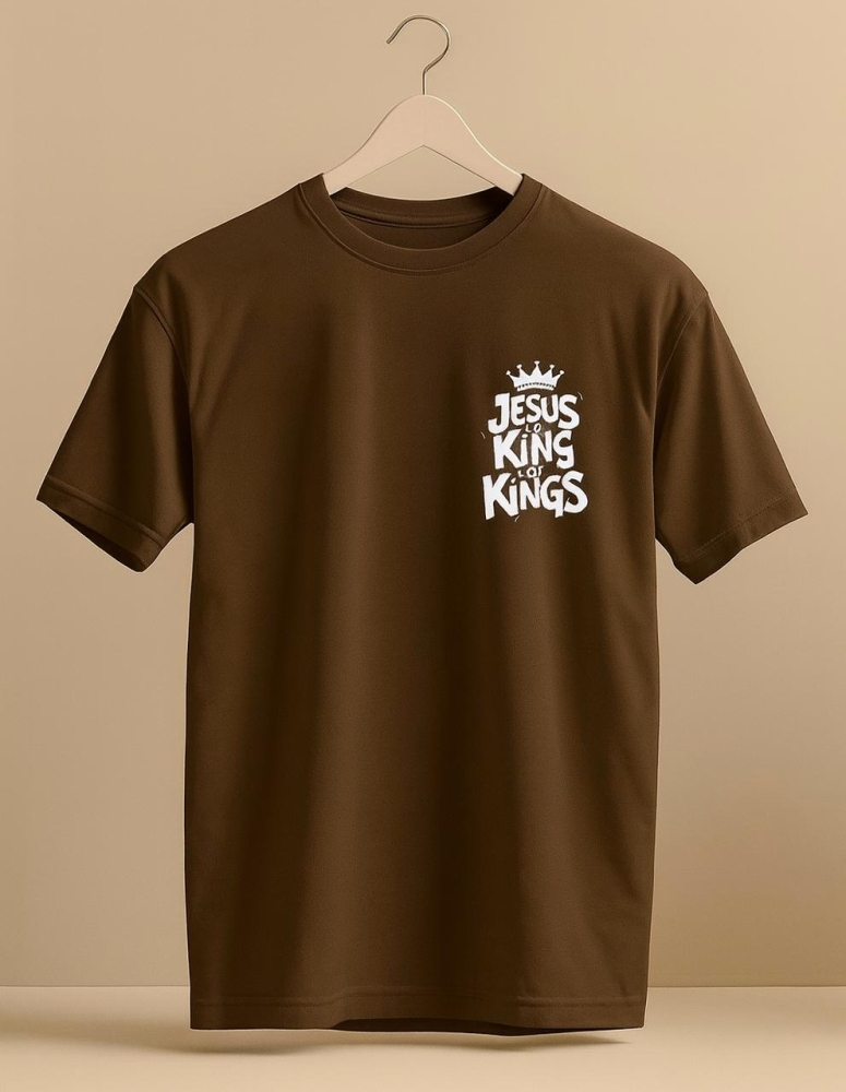 CAMISETA UNISSEX JESUS IS KING OF KINGS (MARROM)