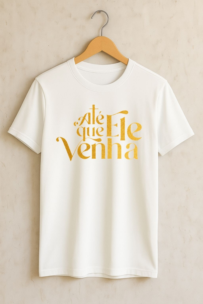 CAMISETA UNISSEX ATÉ QUE ELE VENHA DOURADO (BRANCO) DISPONÍVEL PARA ENVIO A PARTIR DO DIA 15/11