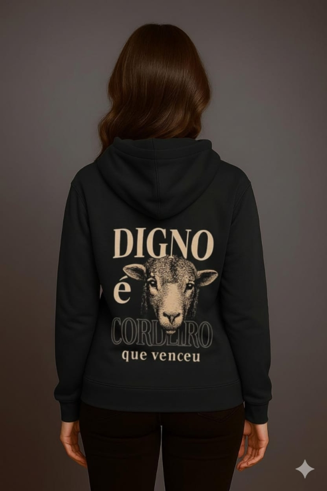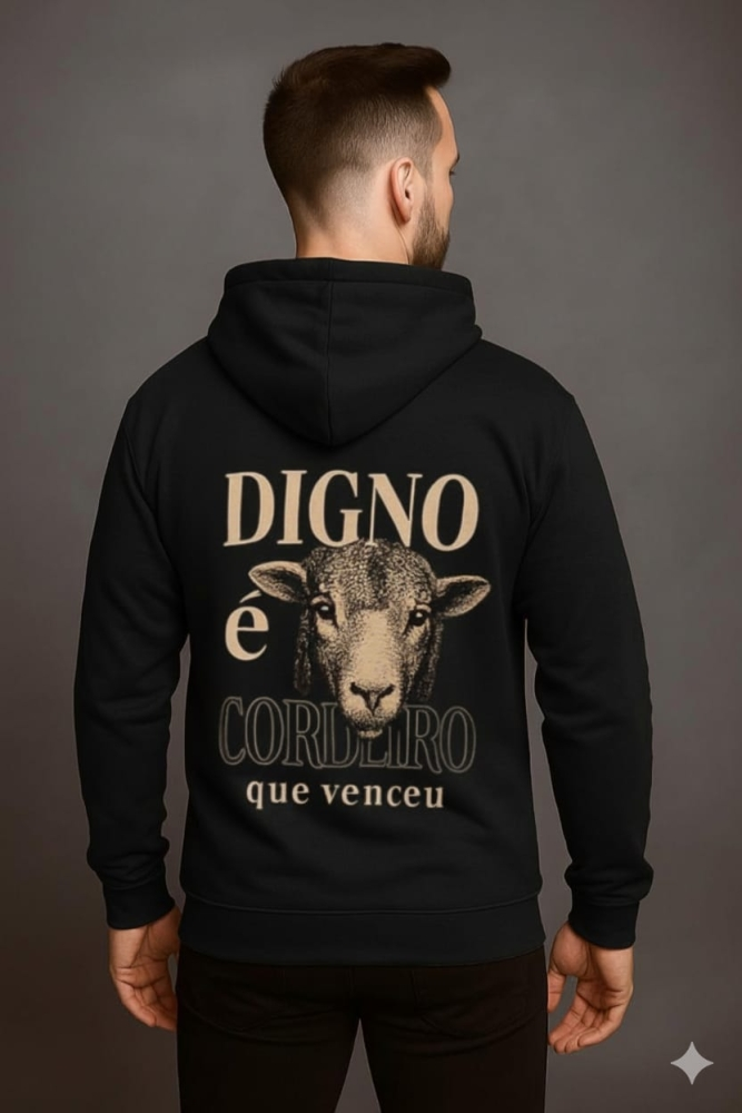 MOLETOM UNISSEX DIGNO É O CORDEIRO (PRETO)