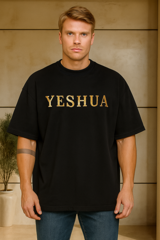 CAMISETA UNISSEX OVERSIZED YESHUA DOURADO (PRETO)